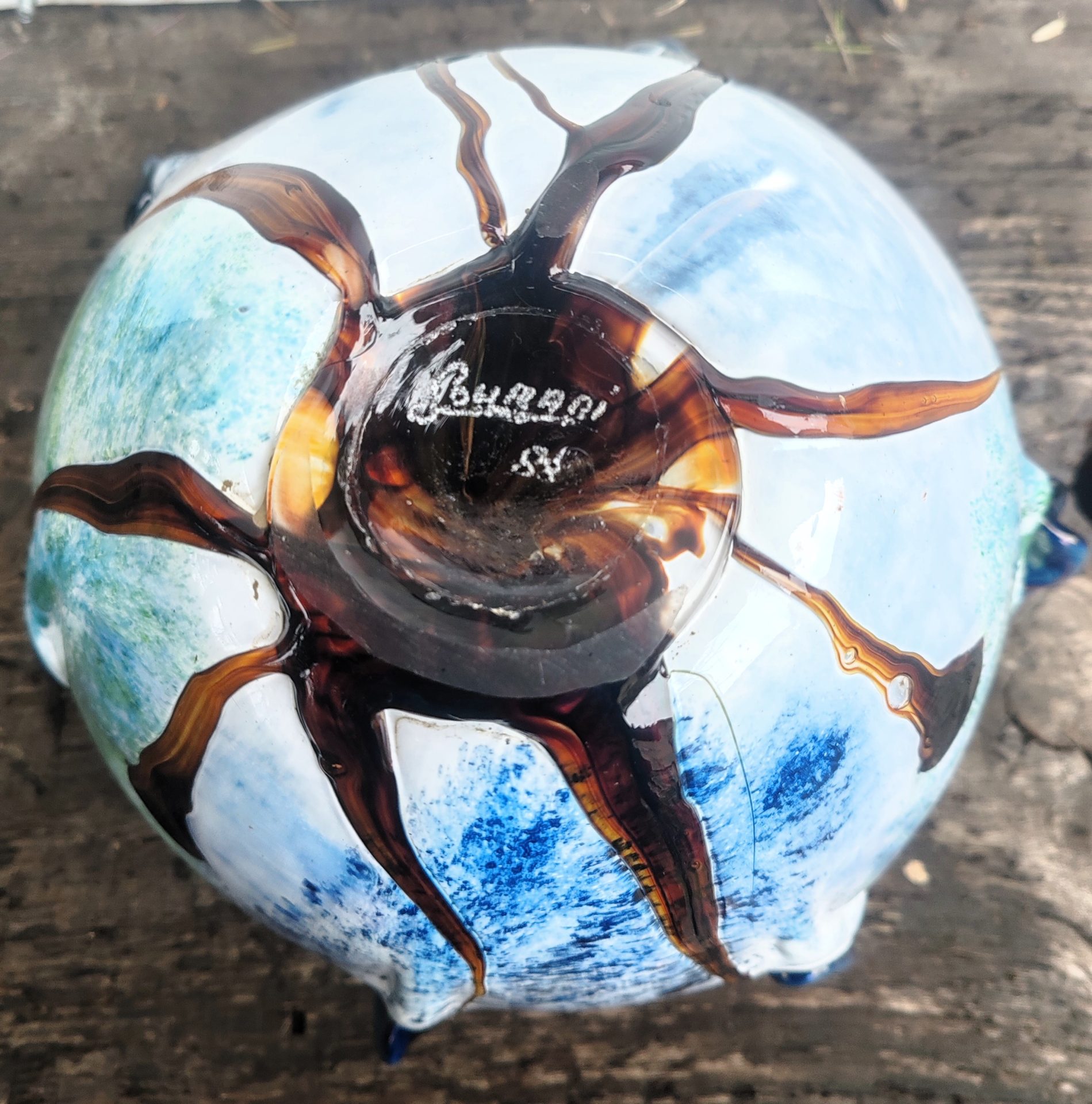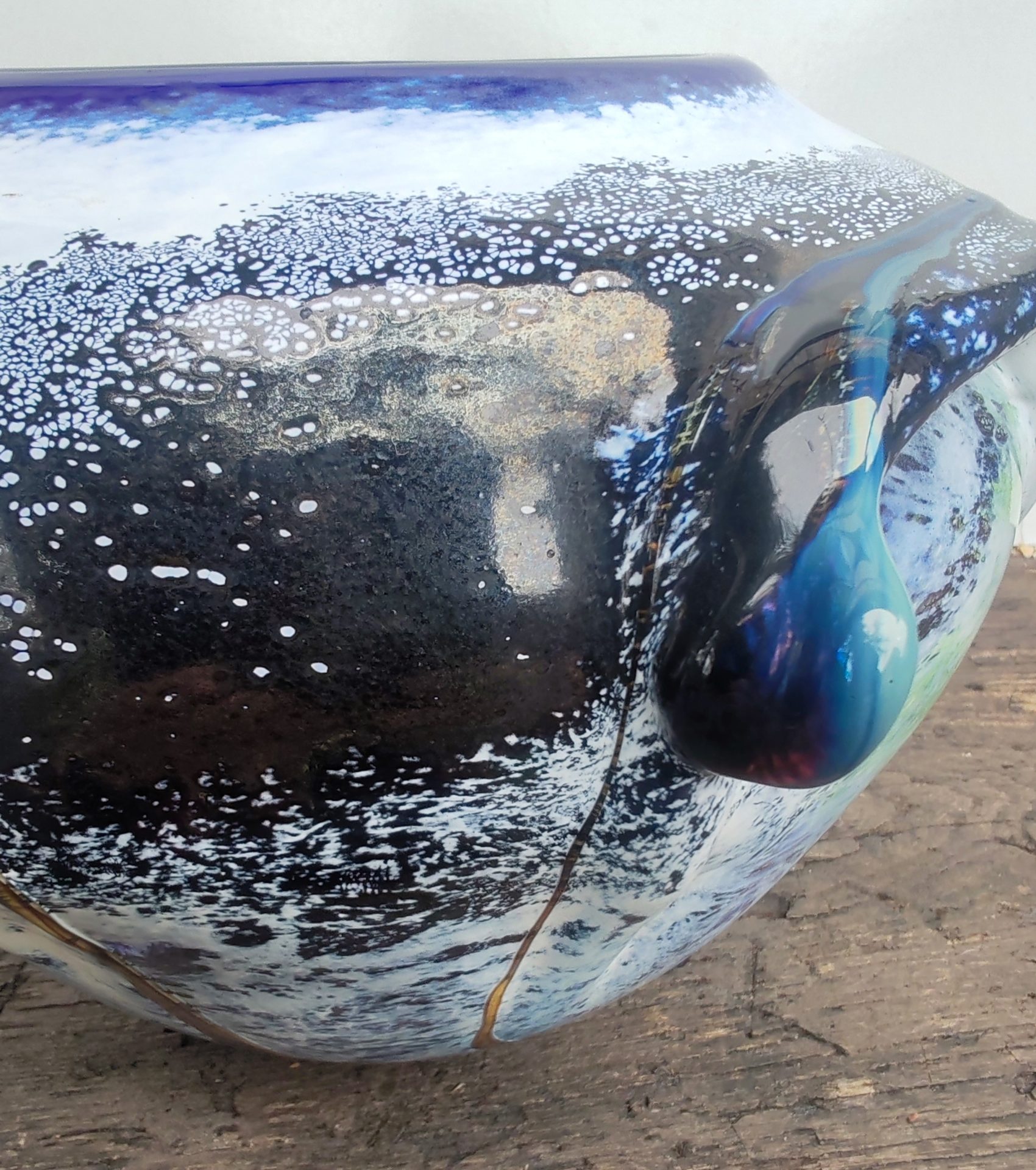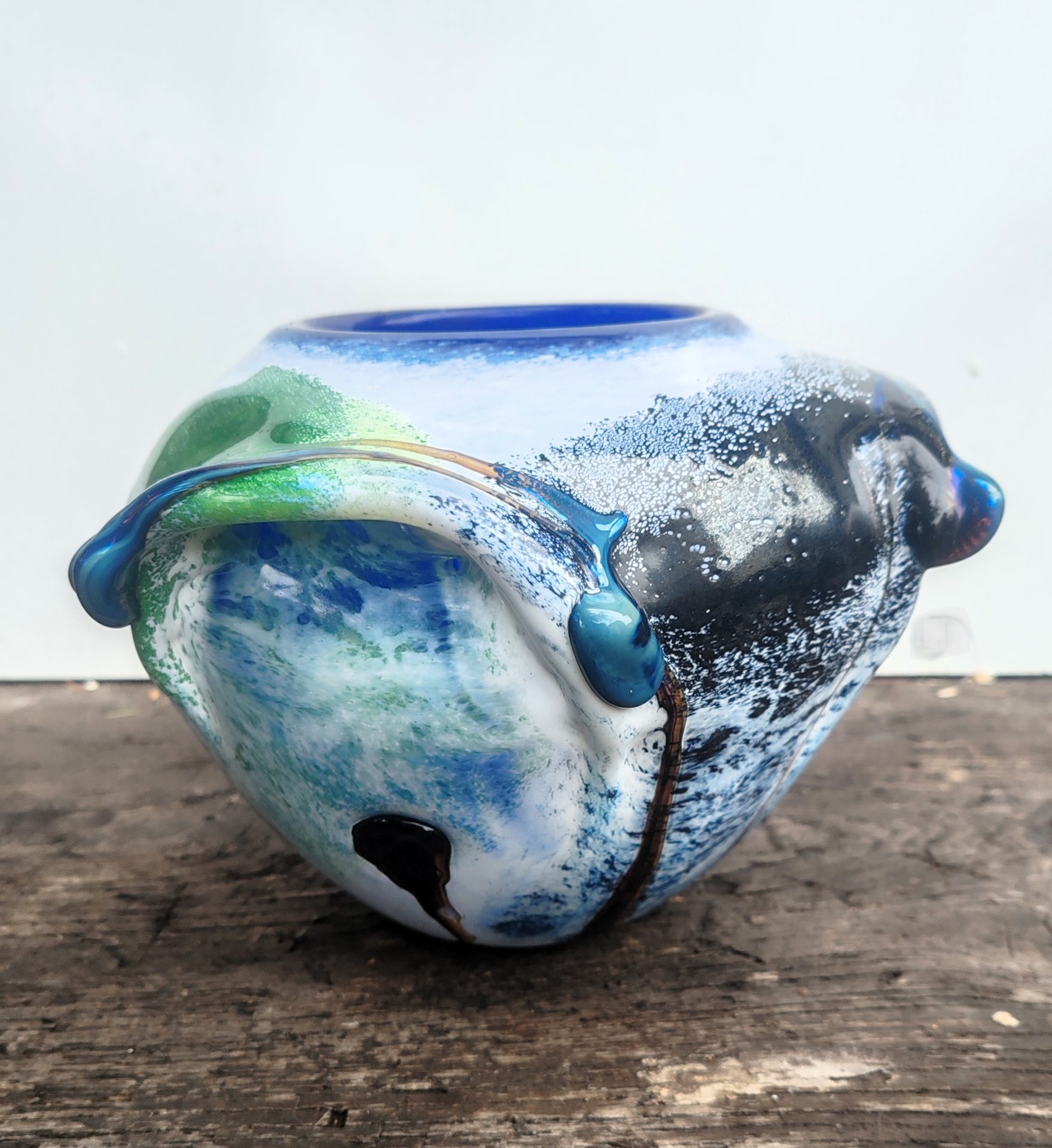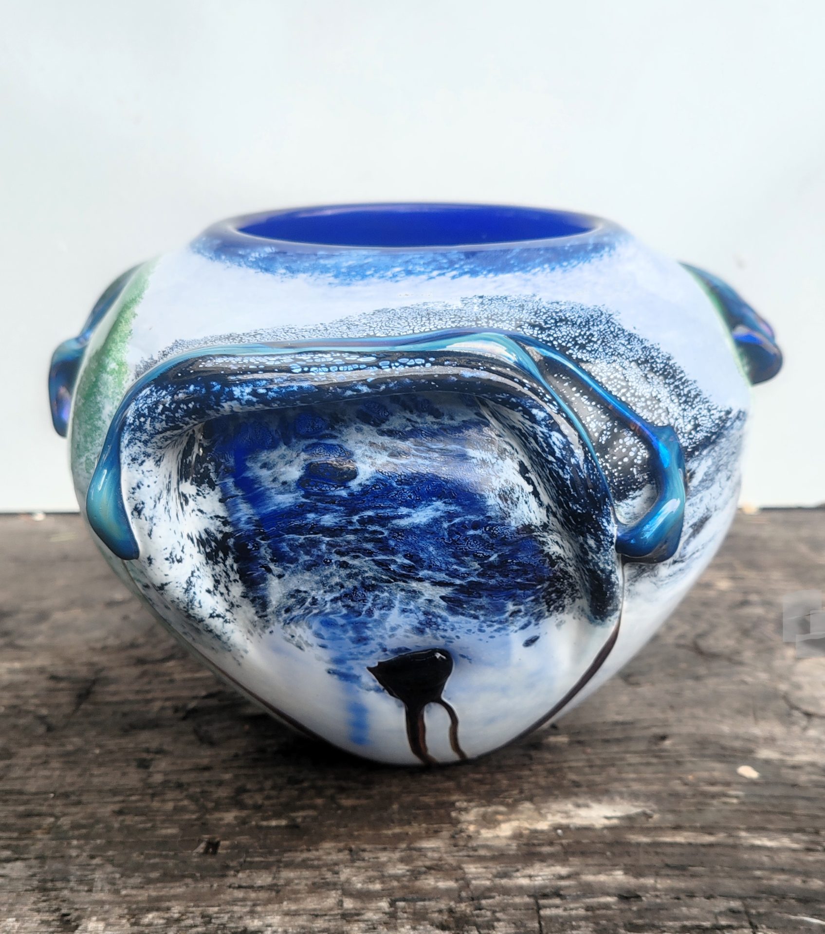 HomeBoutiqueUncategorizedAlda Loumani Grand vase en verre soufflé multicouche à coulures vertes bleues et blanches 1988