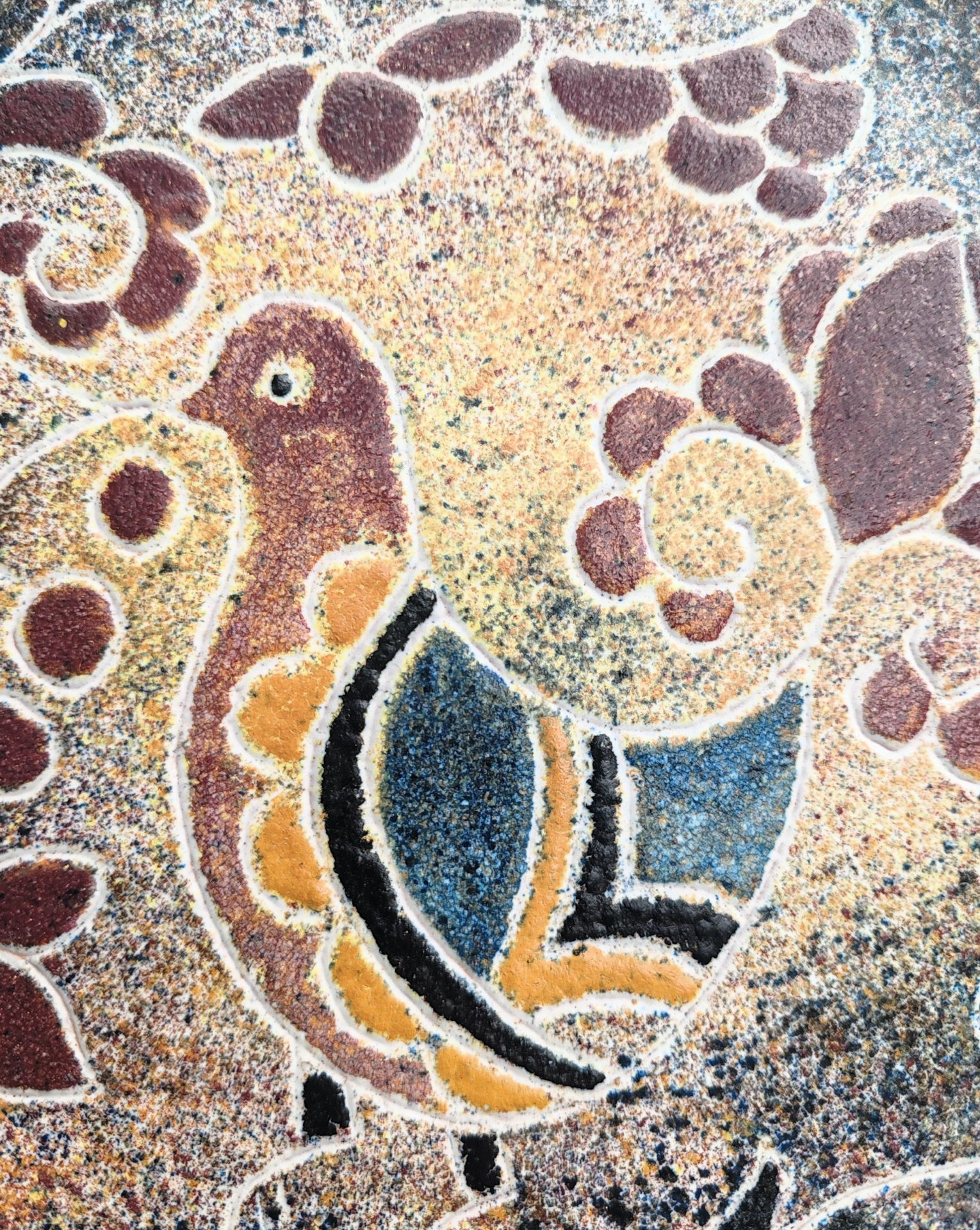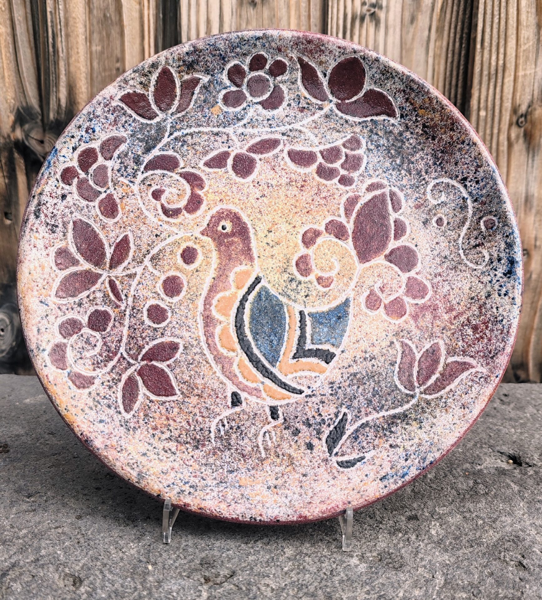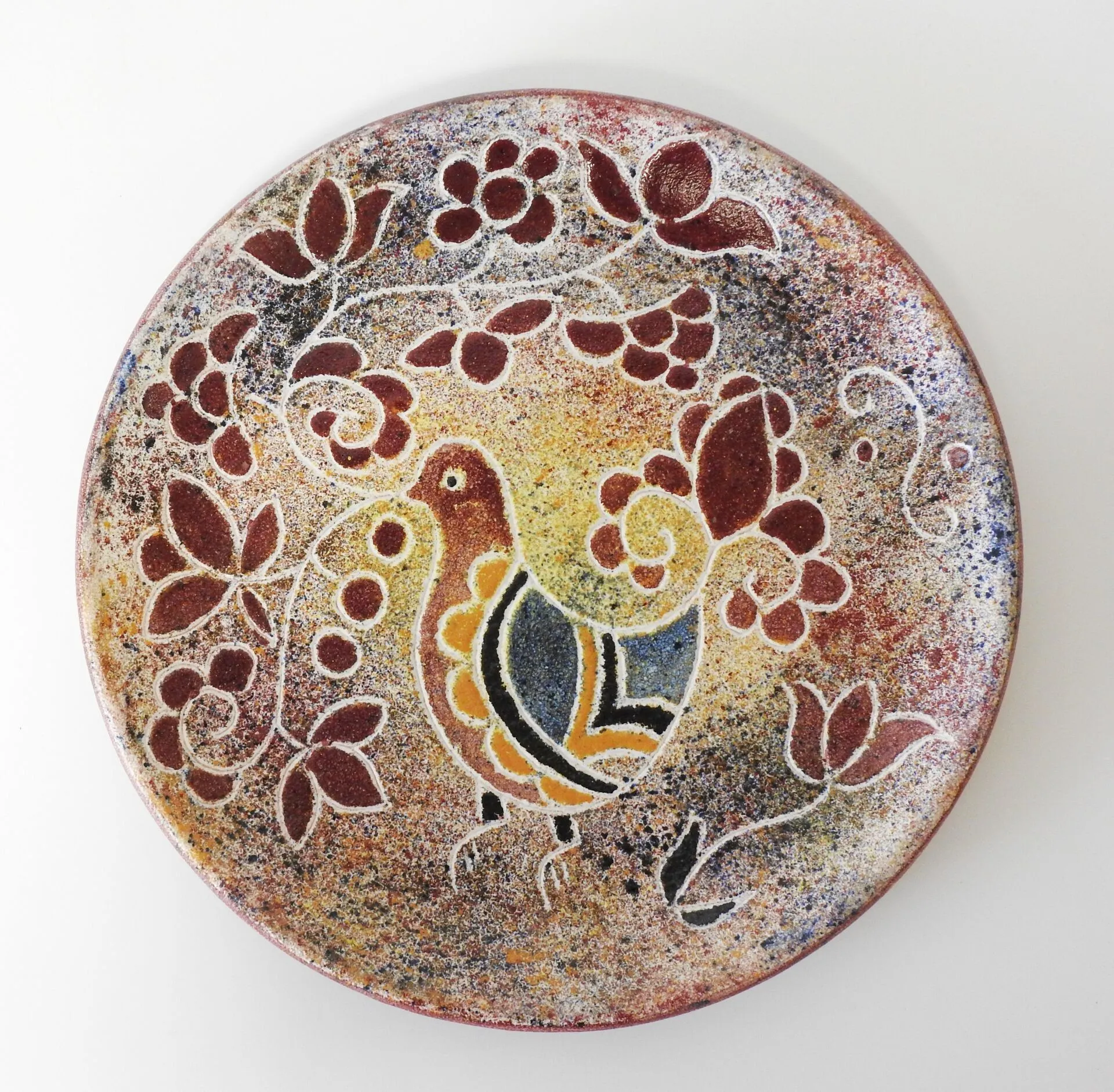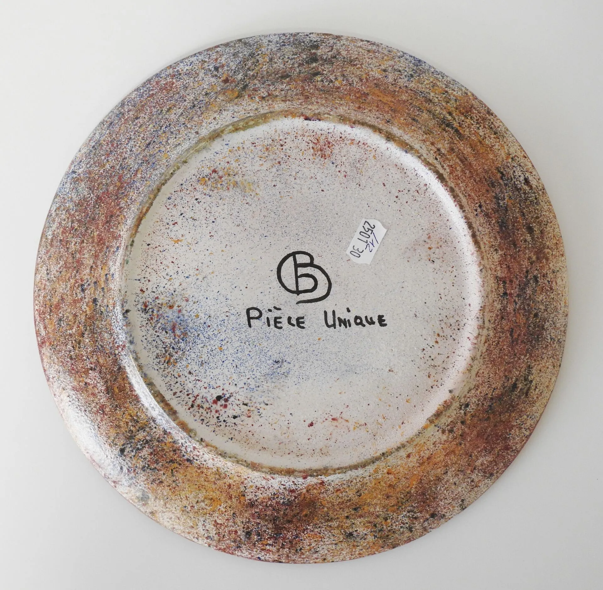 Bernard Buffat est un céramiste à l’œuvre atypique et pleine de poésie. Ce vide poche, est une pièce typique de sa production. Il alterne les touches de couleurs chaudes sur un fond en émaux polychromes nuancés. Pièce unique Monogrammée sur l’envers