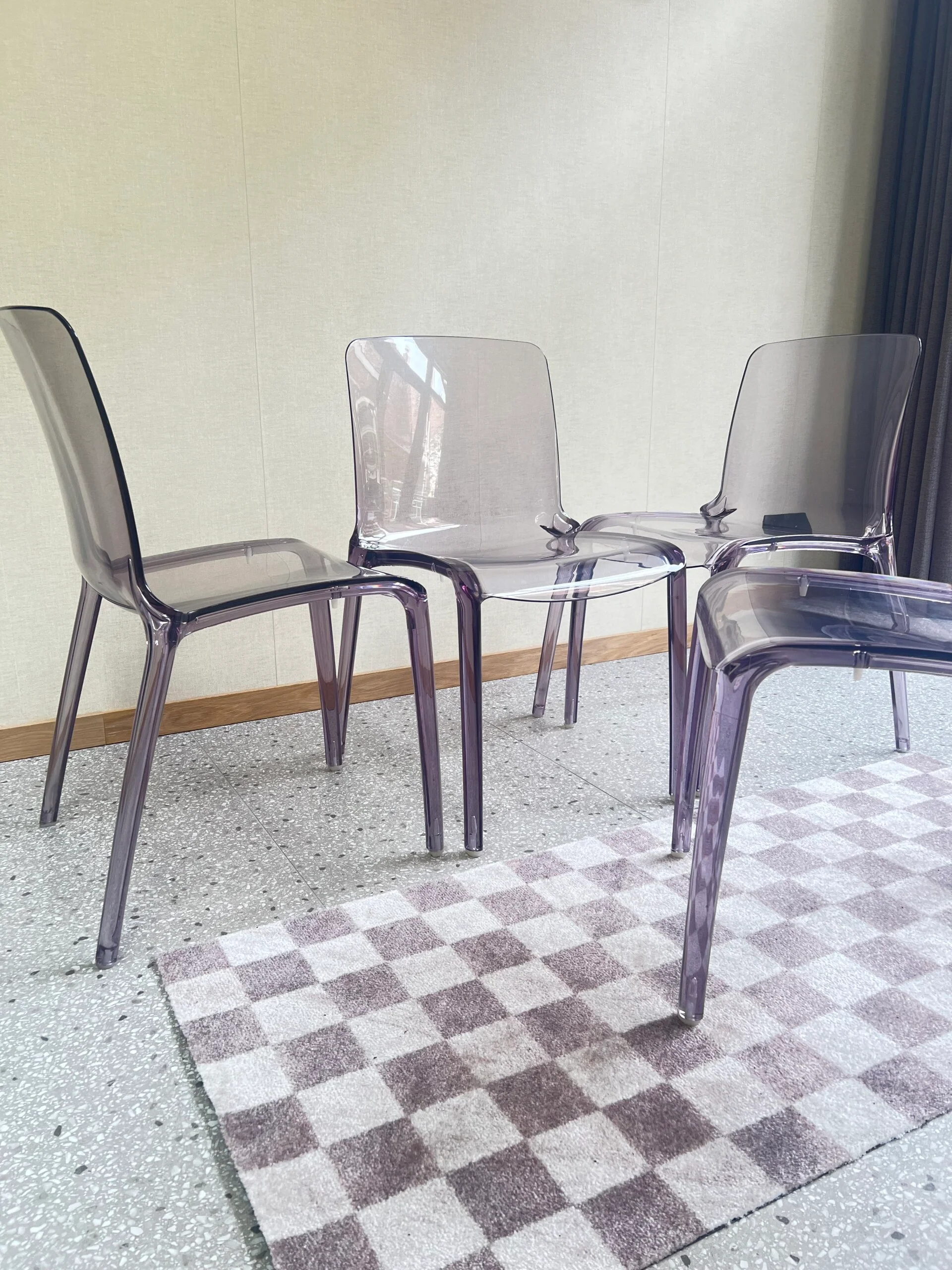 Empilables et utilisables à l’intérieur et à l’extérieur. La forme fluide et raffinée de la chaise Tiffany au design monobloc est réalisée en polycarbonate transparent ou transparent fumé, résistantes aux UV, aux griffures.