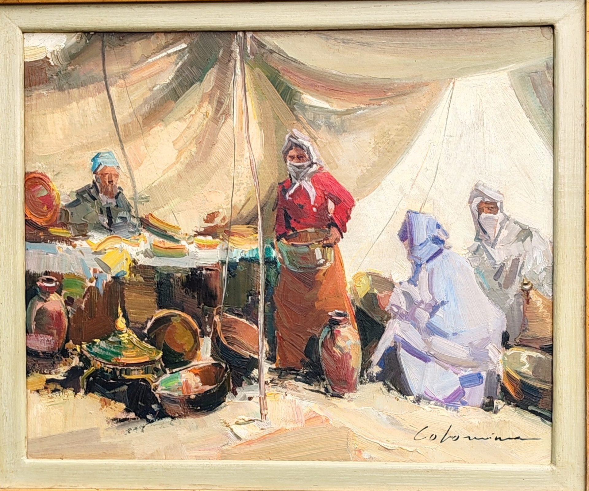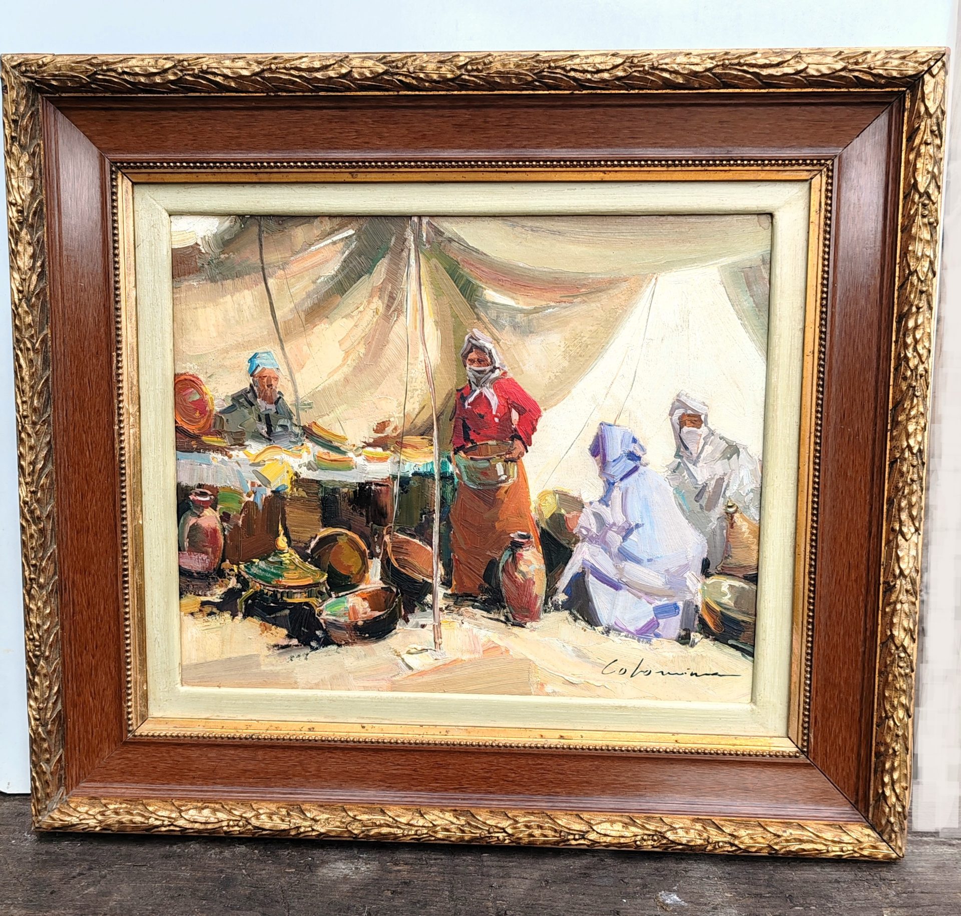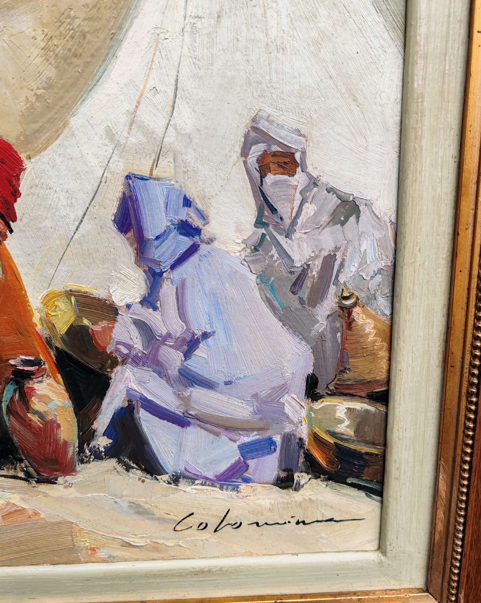 Colomina Tableau orientaliste huile sur toile marché oriental XX ème