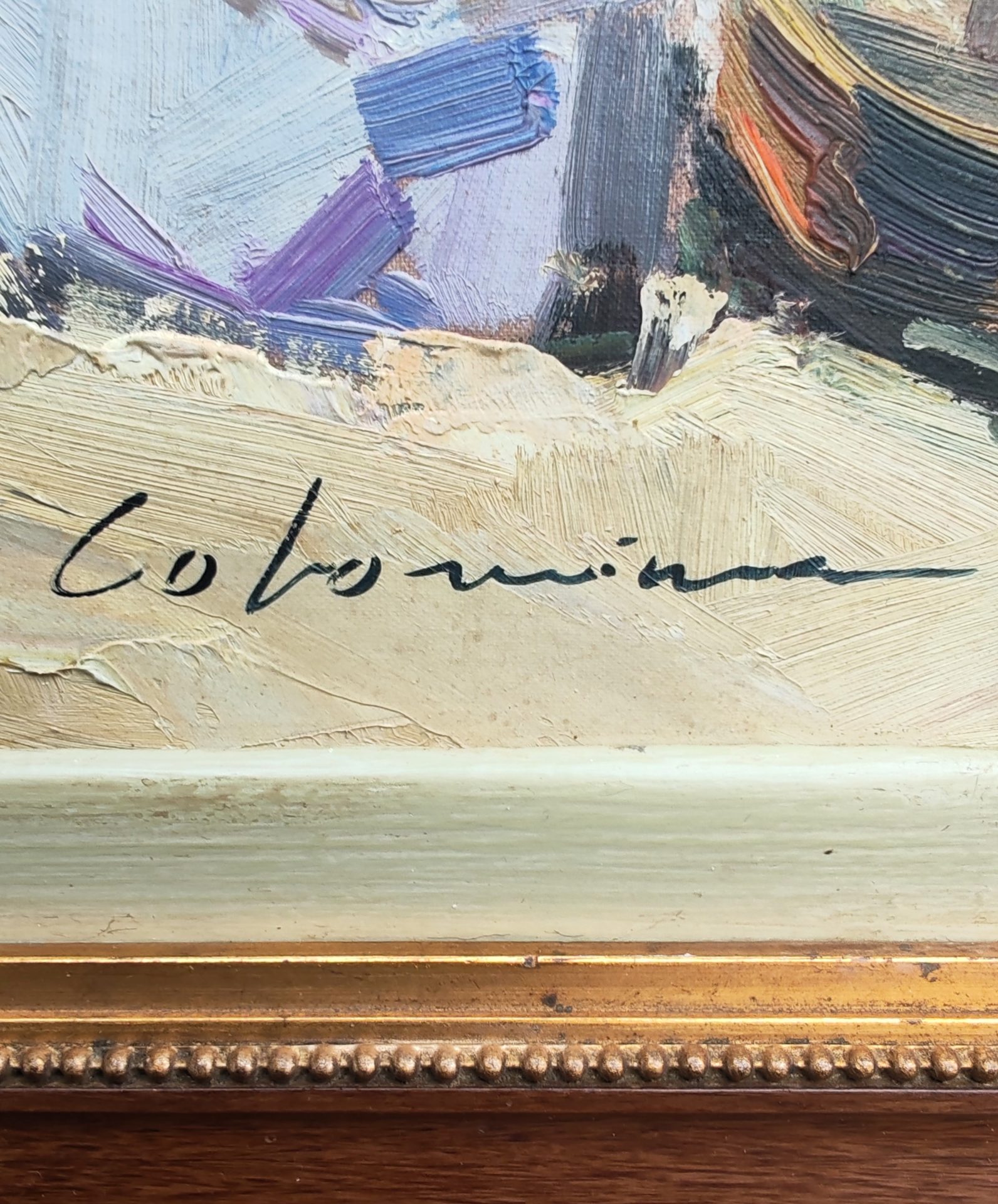 La signature en bas à droite semble lire très clairement :« Colomina » (écriture cursive, bien intégrée à la peinture,  signature d’origine, pas ajoutée après coup)  Colomina est un nom espagnol / catalan assez courant.   Plusieurs artistes du XXᵉ siècle portent ce nom (peintres régionaux, parfois voyageurs).
