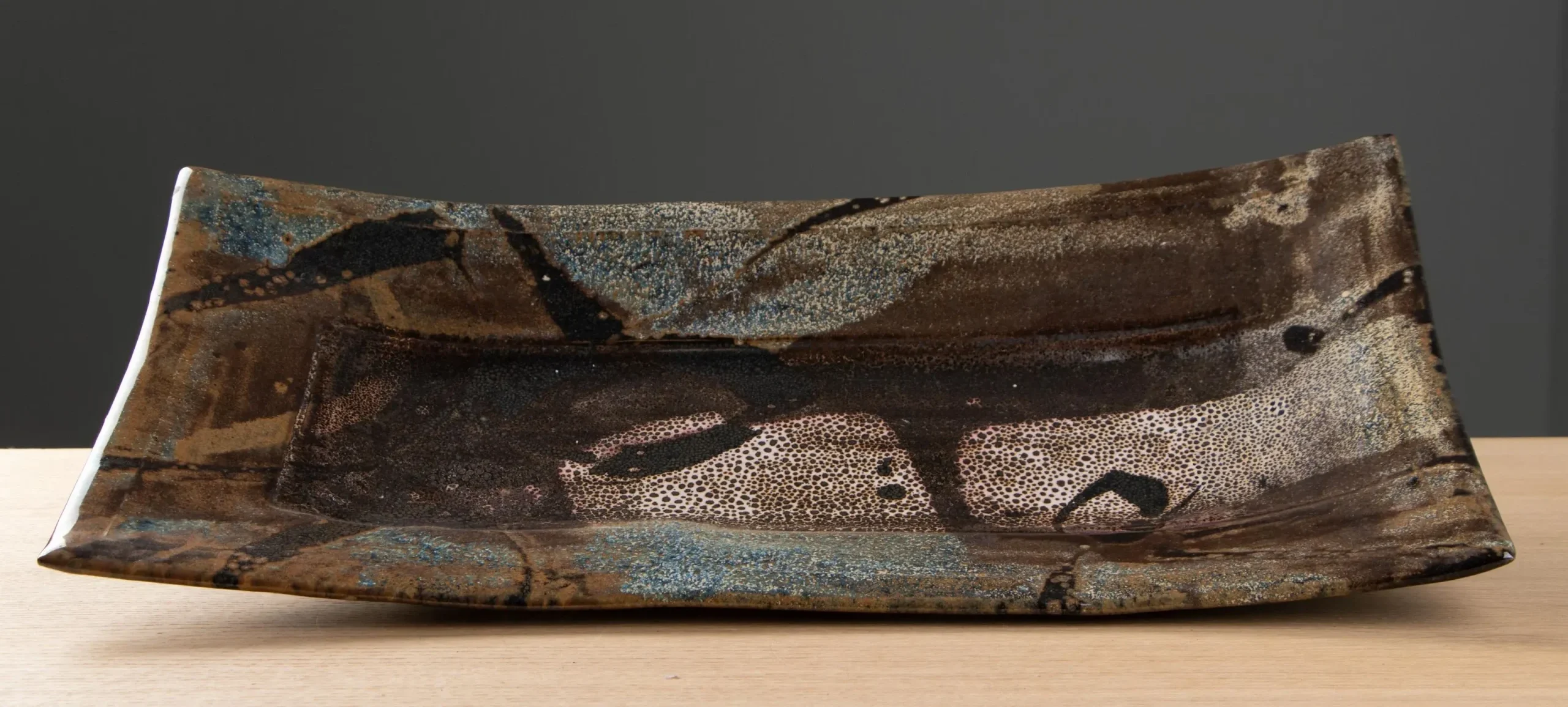 HomeBoutiqueArt décoratif, Vases-coupes-pichetsDUBUC Philippe Important plat rectangulaire en grés émaillé monté sur deux pieds XX ème