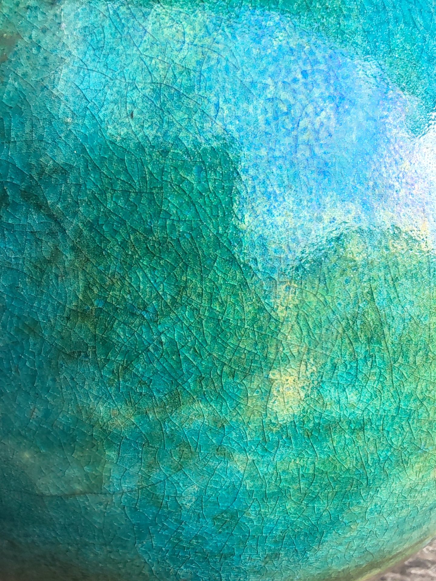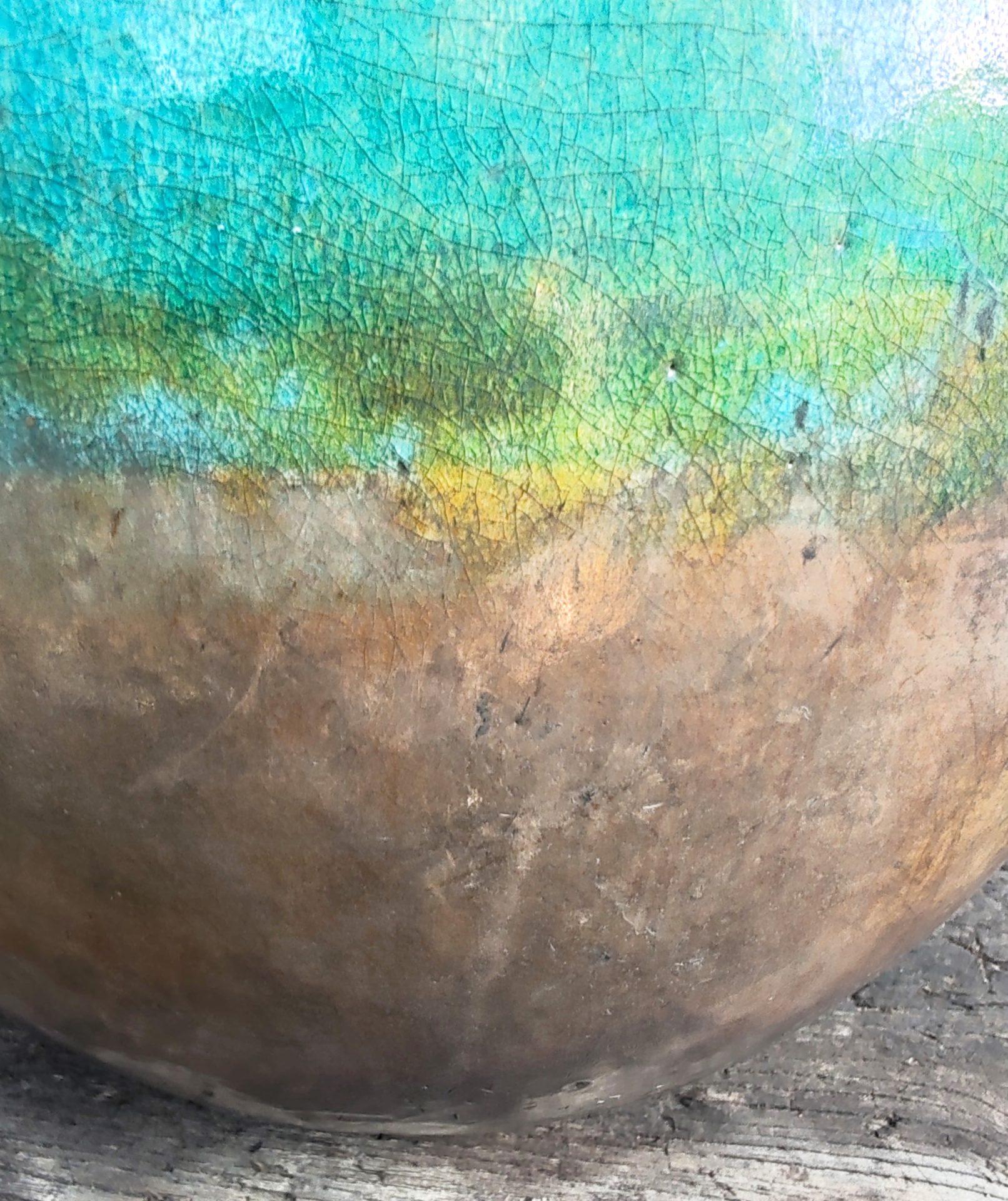 Grand vase boule de Gisèle Buthod-Garçon (née en 1954) en grés émaillé nuancé de couleur bleu, vert, ocre.