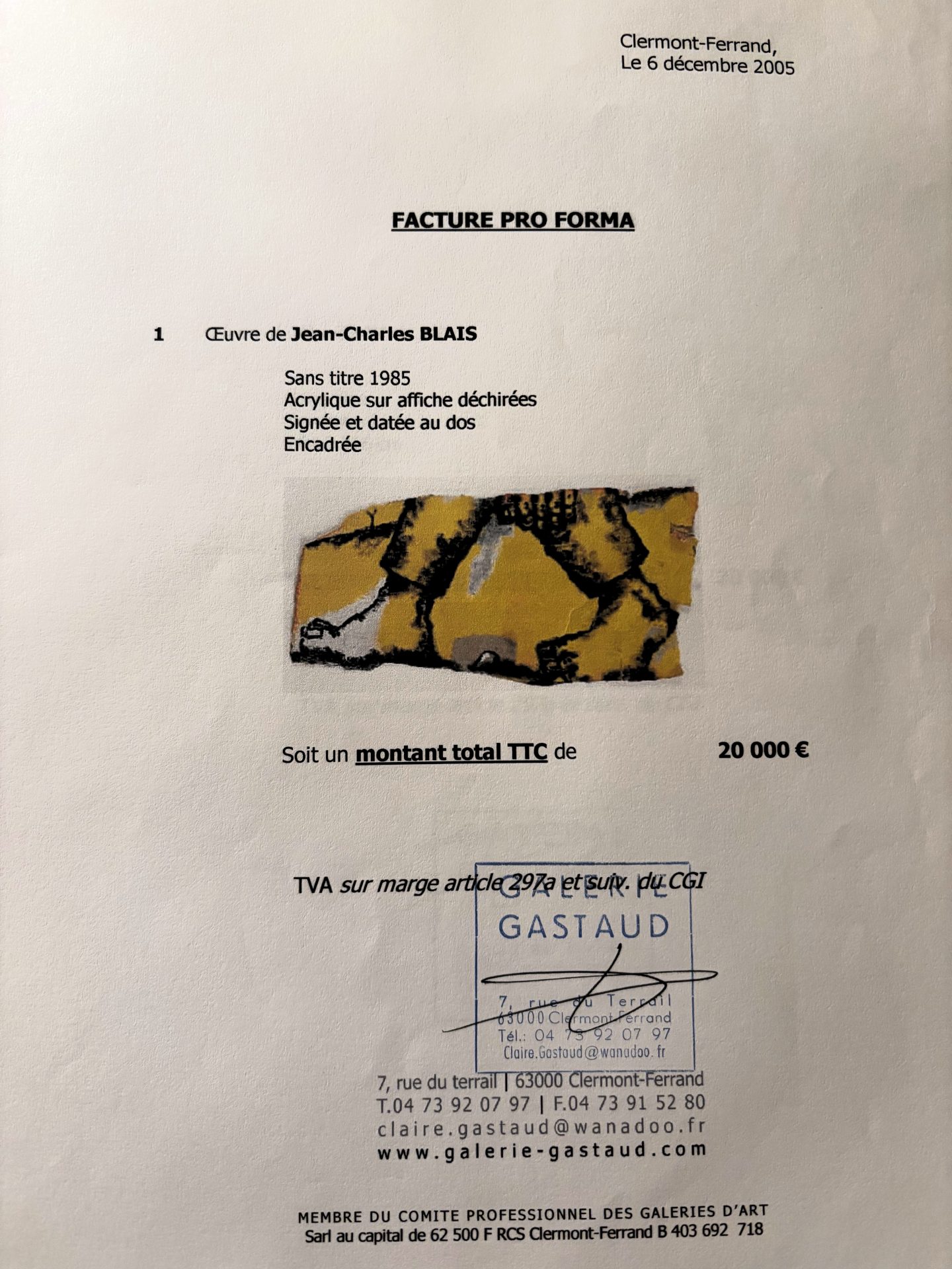 Authentification Vendu avec certificat d’authenticité de la galerie Facture de la galerie