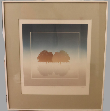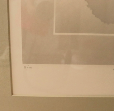 Les tons souvent pastel, portés par un grain d’aquatinte d’une grande finesse, intensifient la sensibilité cosmique de l’artiste. Par une grande simplification des formes, Jean Solombre réduit figures, paysages, objets à de simples silhouettes clairsemées dans l’espace de la toile.