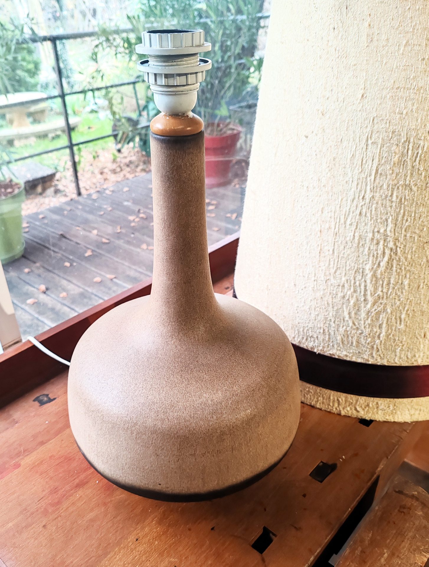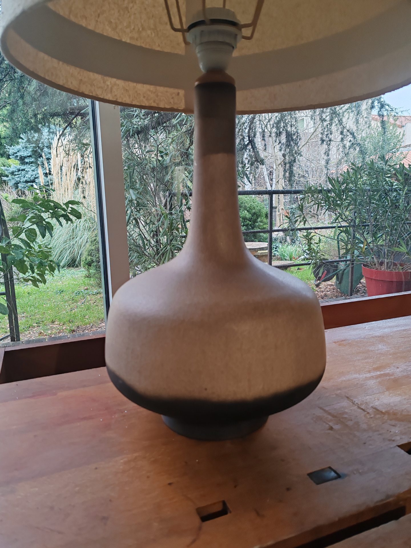 Paire de lampes vintage abat-jour d’origine pied en céramique années  70′