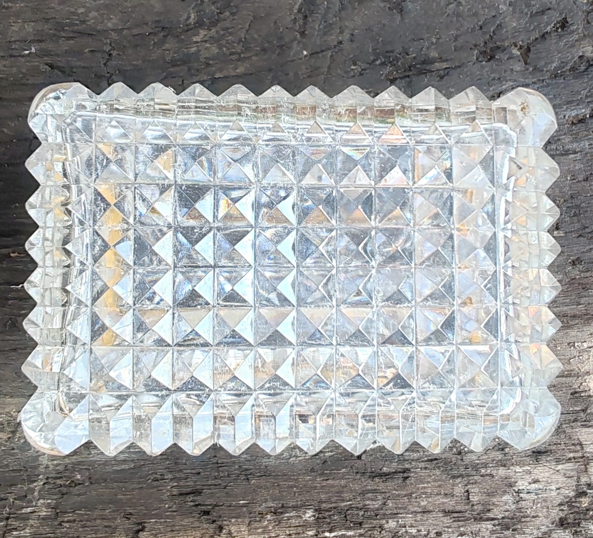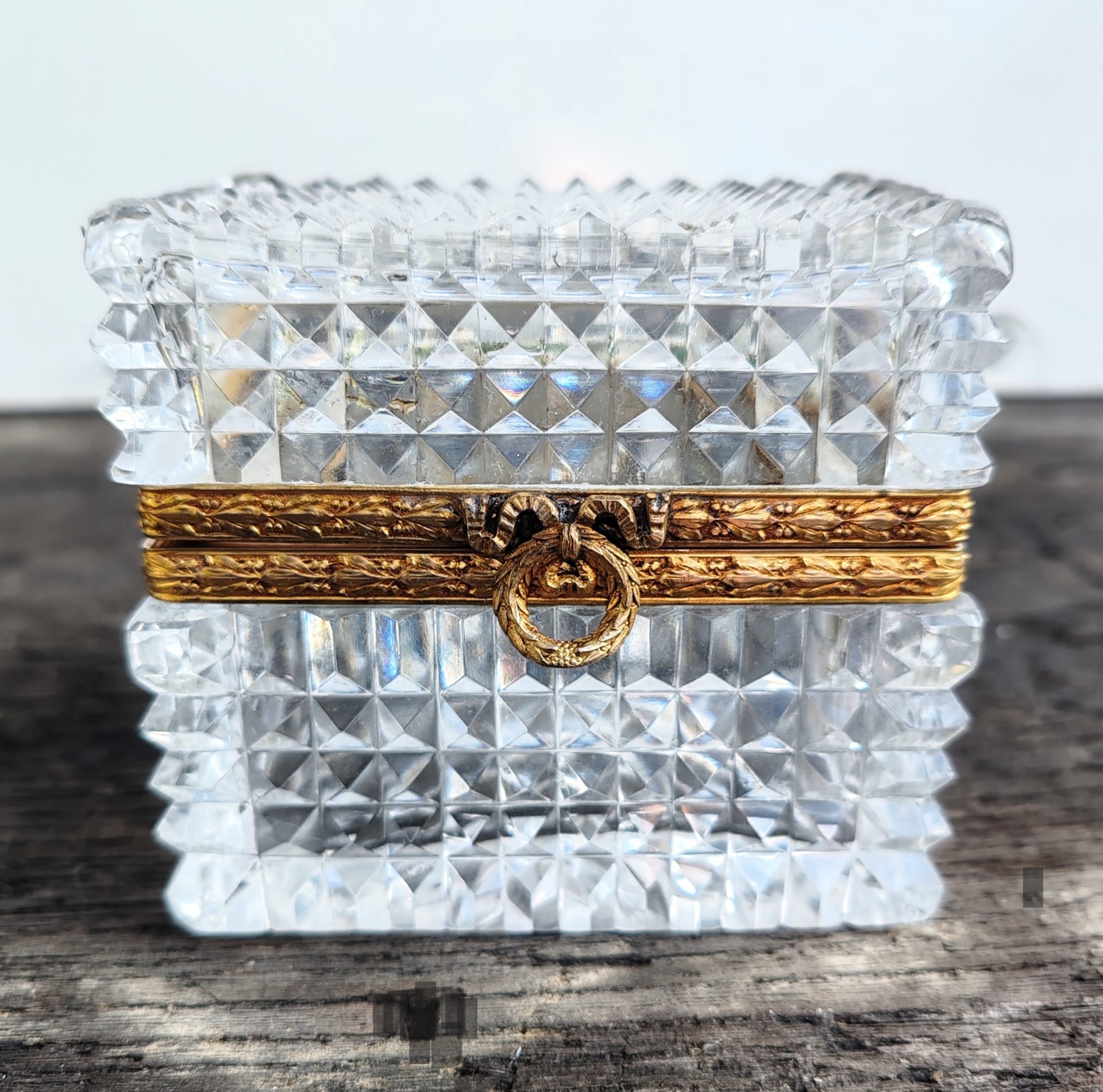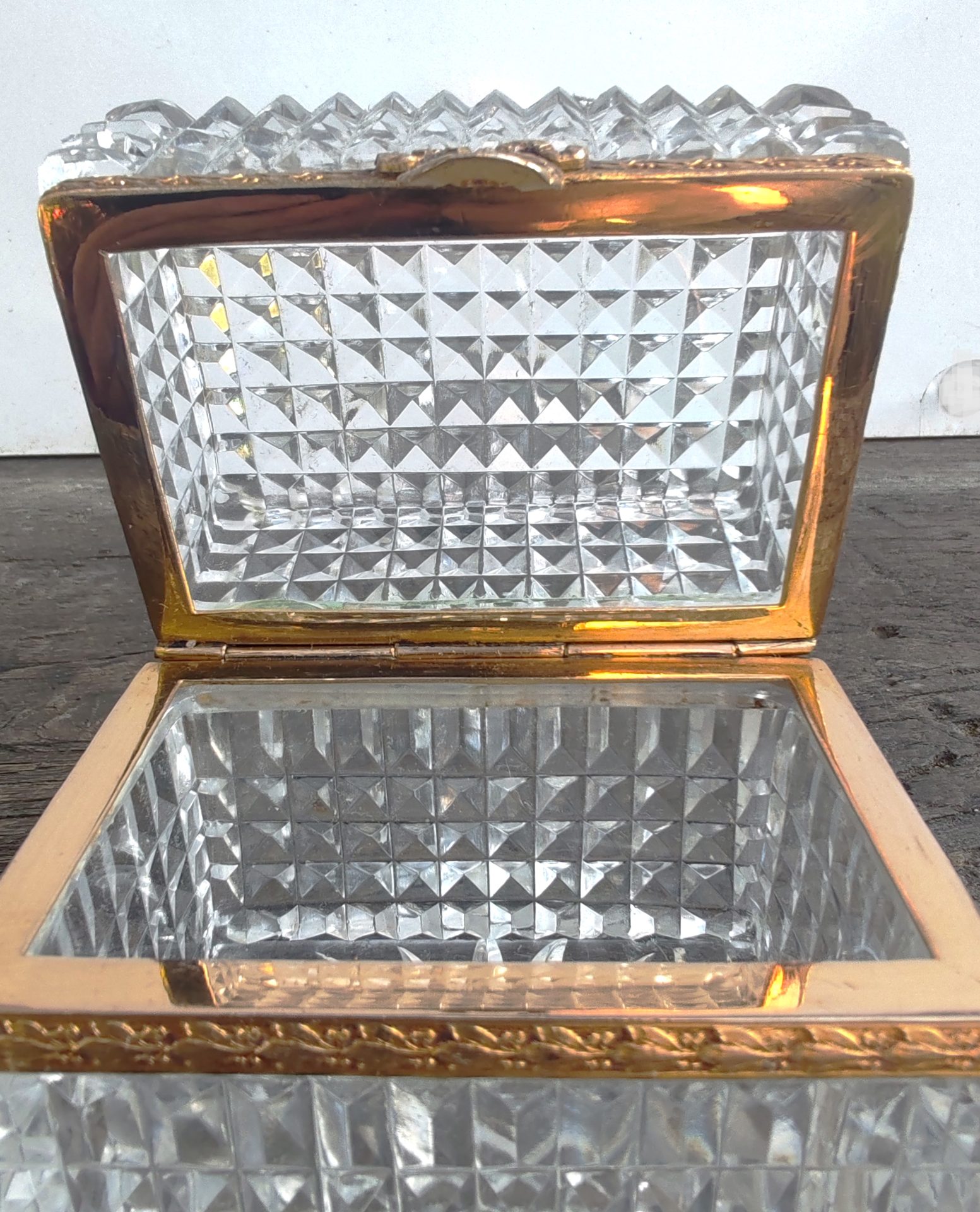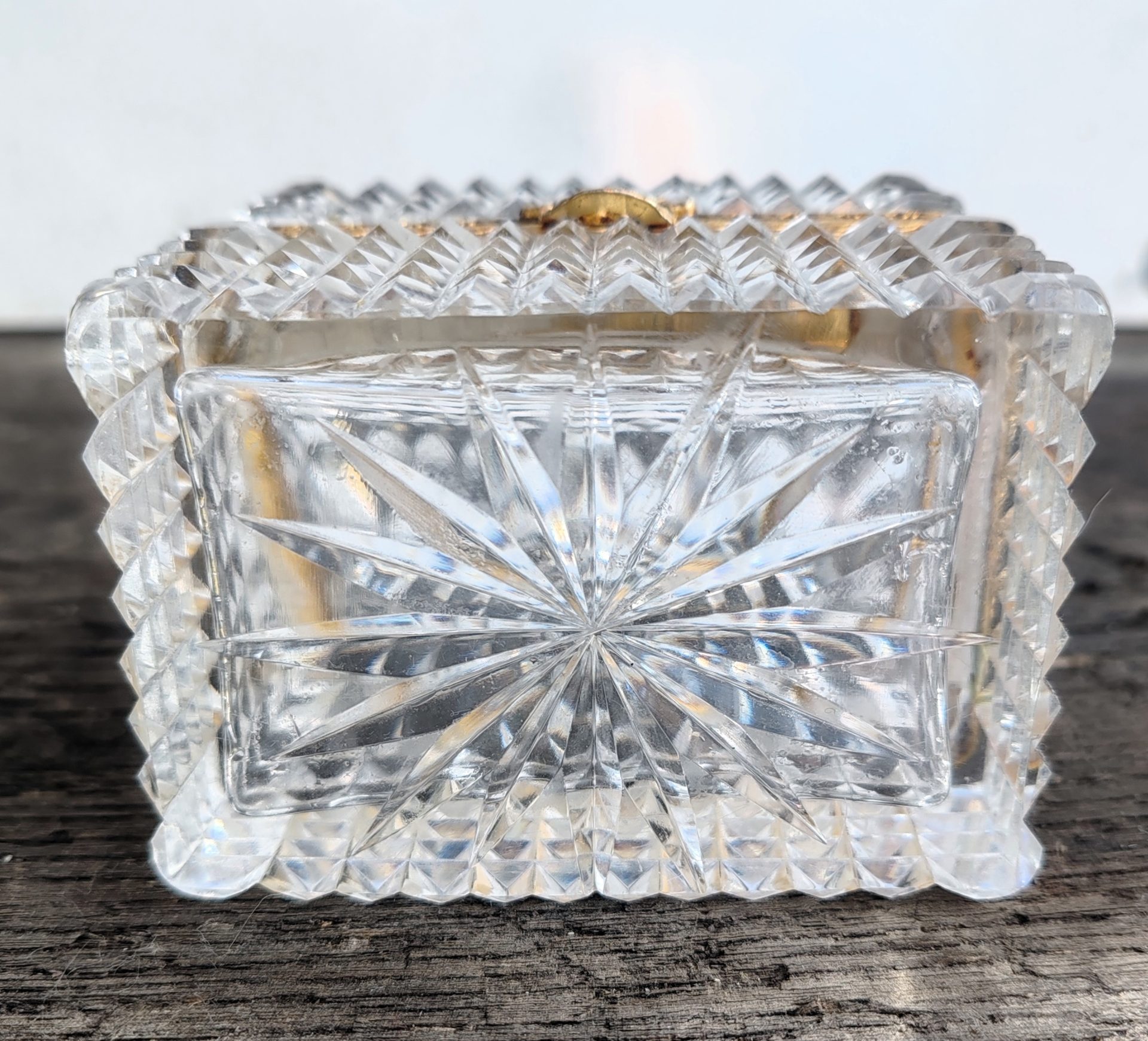 Ce coffret est en bon état, Fabriquée en cristal épais et lourd avec un motif taillé en diamant.