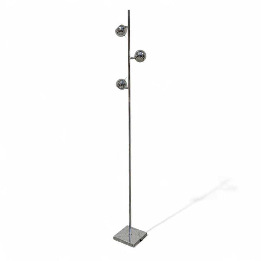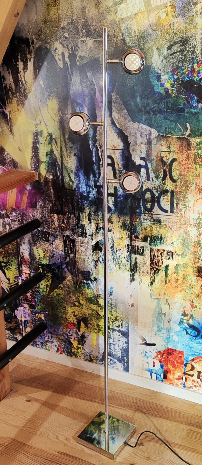 SEYLUMIERE Modèle Hary Lampadaire Liseuse en métal chromé à trois spots globulaires orientables circa 80/90.