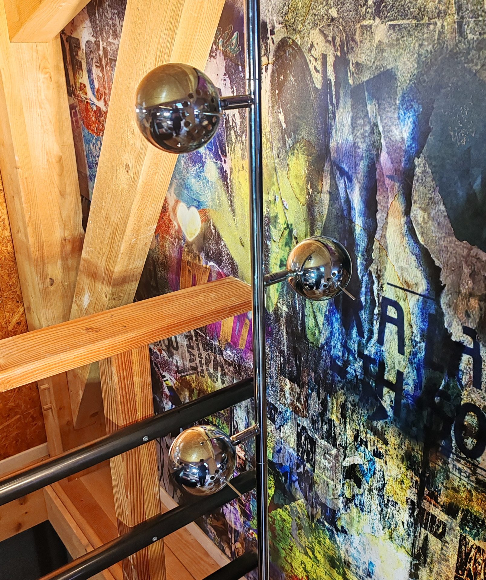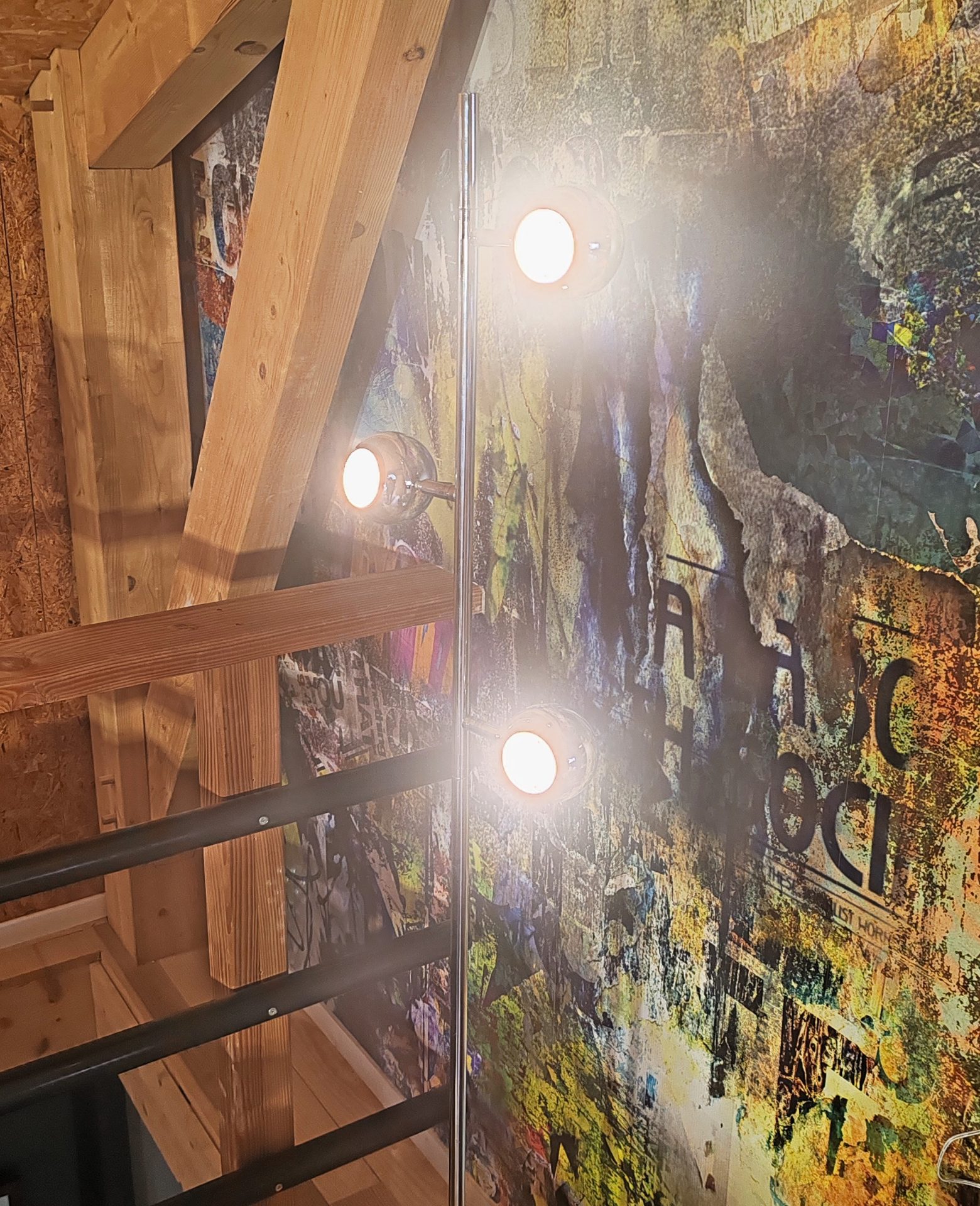 Magnifique liseuse de la marque seylumiere, modèle hary. Cette liseuse est un véritable atout pour votre intérieur grâce à son design élégant, épuré, et vintage (style: space age), en métal chromé, trois spots globulaires, orientables, Interrupteur au pied.