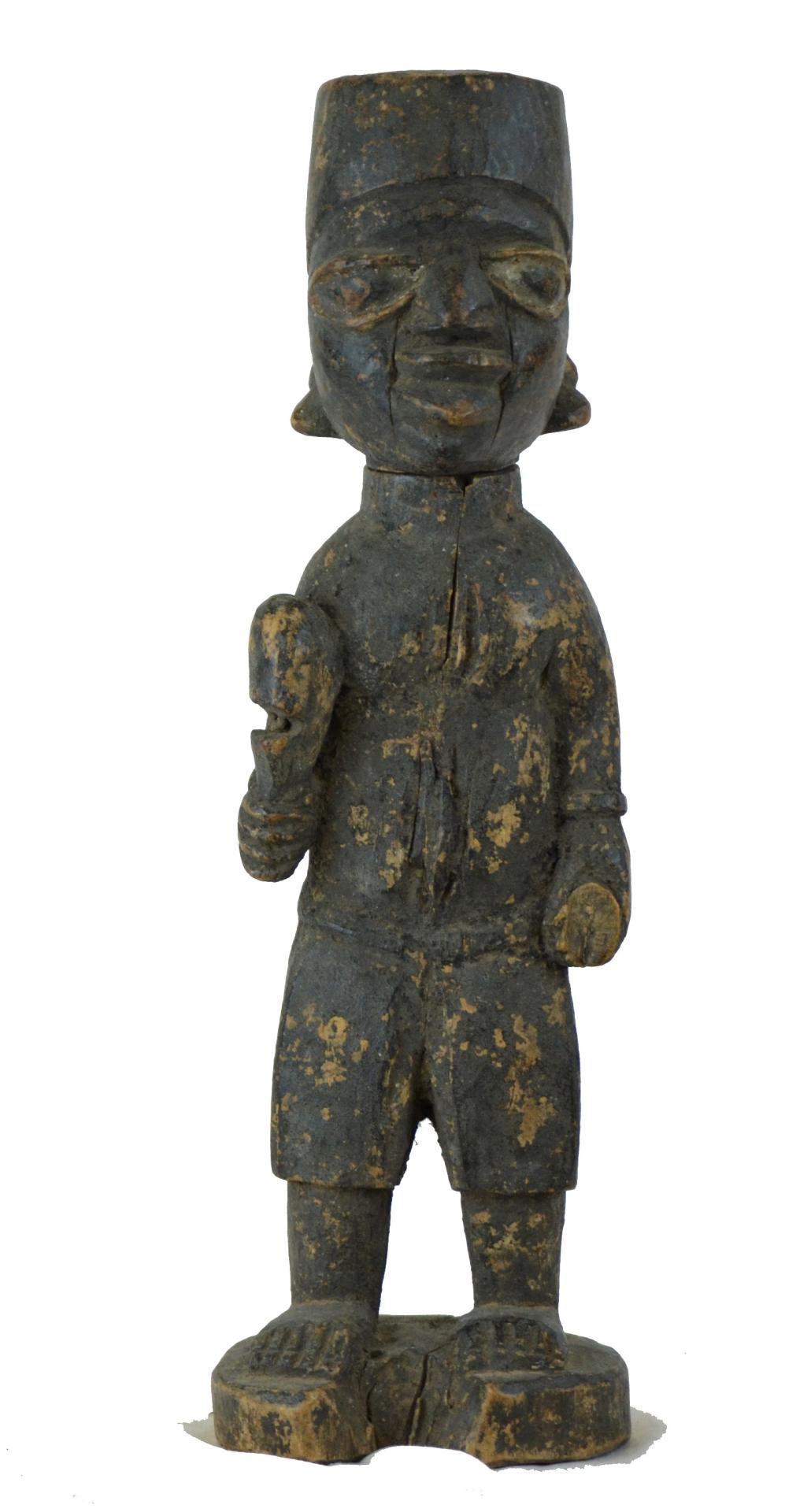 THIS STATUETTE IS PARTICULARLY REMARKABLE BY ITS ARTICULATED HEAD, TRACE OF POLYCHROMY AND THE EMPTY INTERIOR CARRYING THE SECRET OF YORUBA MAGIC.
